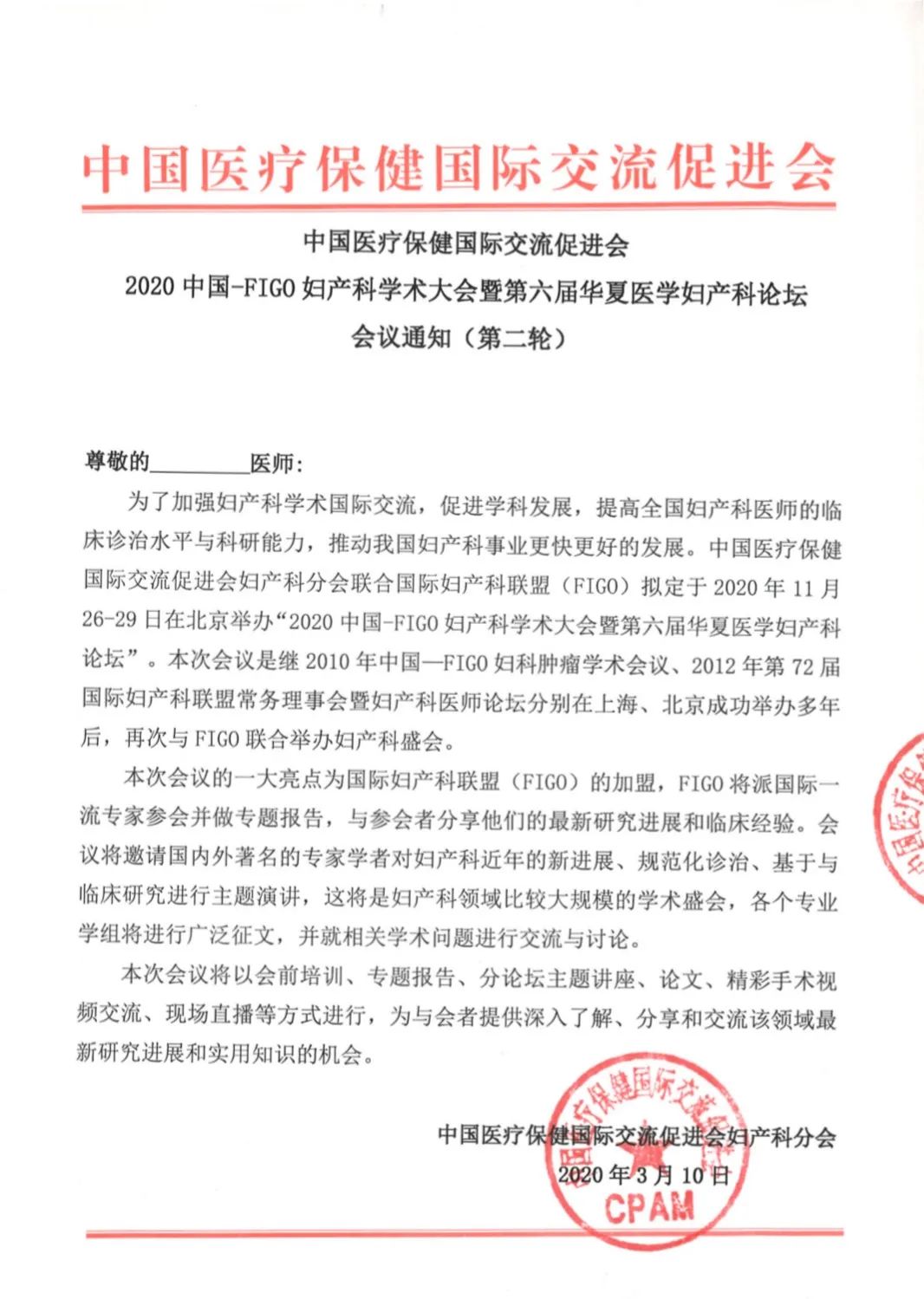 會(huì)議通知 | 2020年中國(guó)-FIGO婦產(chǎn)科學(xué)術(shù)大會(huì)會(huì)議通知