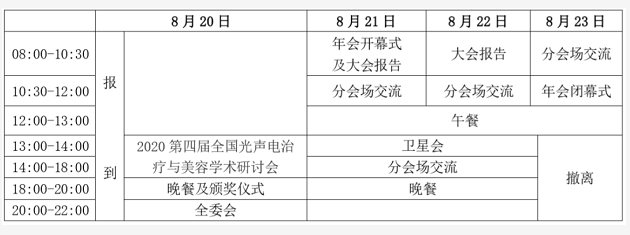 2020年8月20日報(bào)到,21-22日全天、23日上午會議,23日下午撤離。