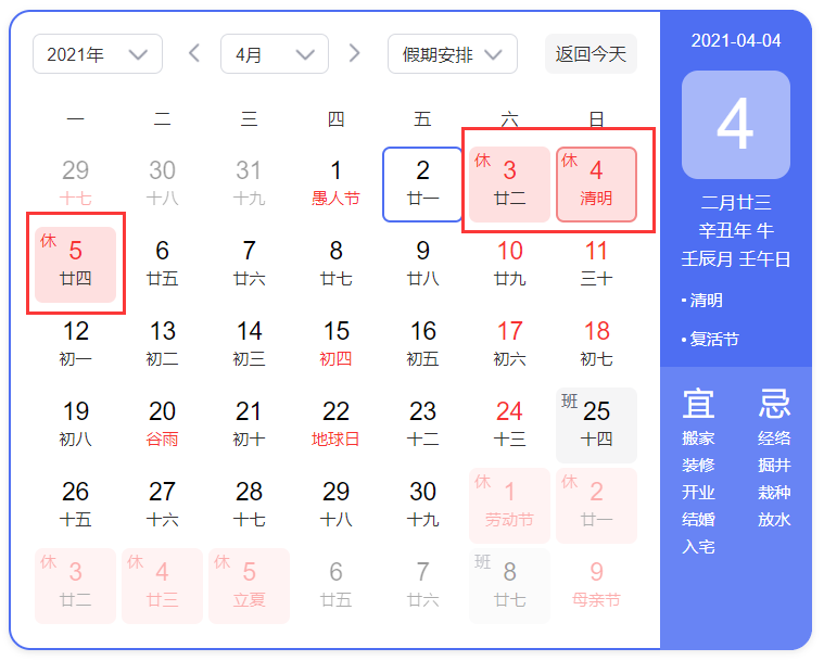 2021年北京華康普美科技有限公司,“清明節(jié)”假期為:4月3日-4月5日,共3天。