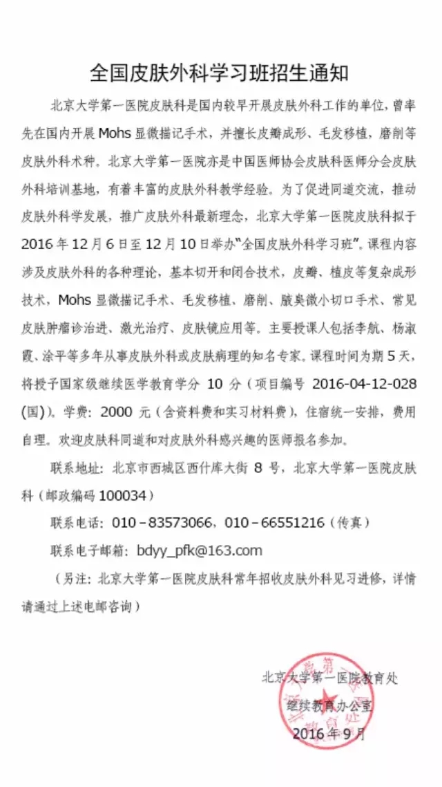 全國皮膚外科學習班暨北大皮膚外科高峰論壇,12月北京約起來
