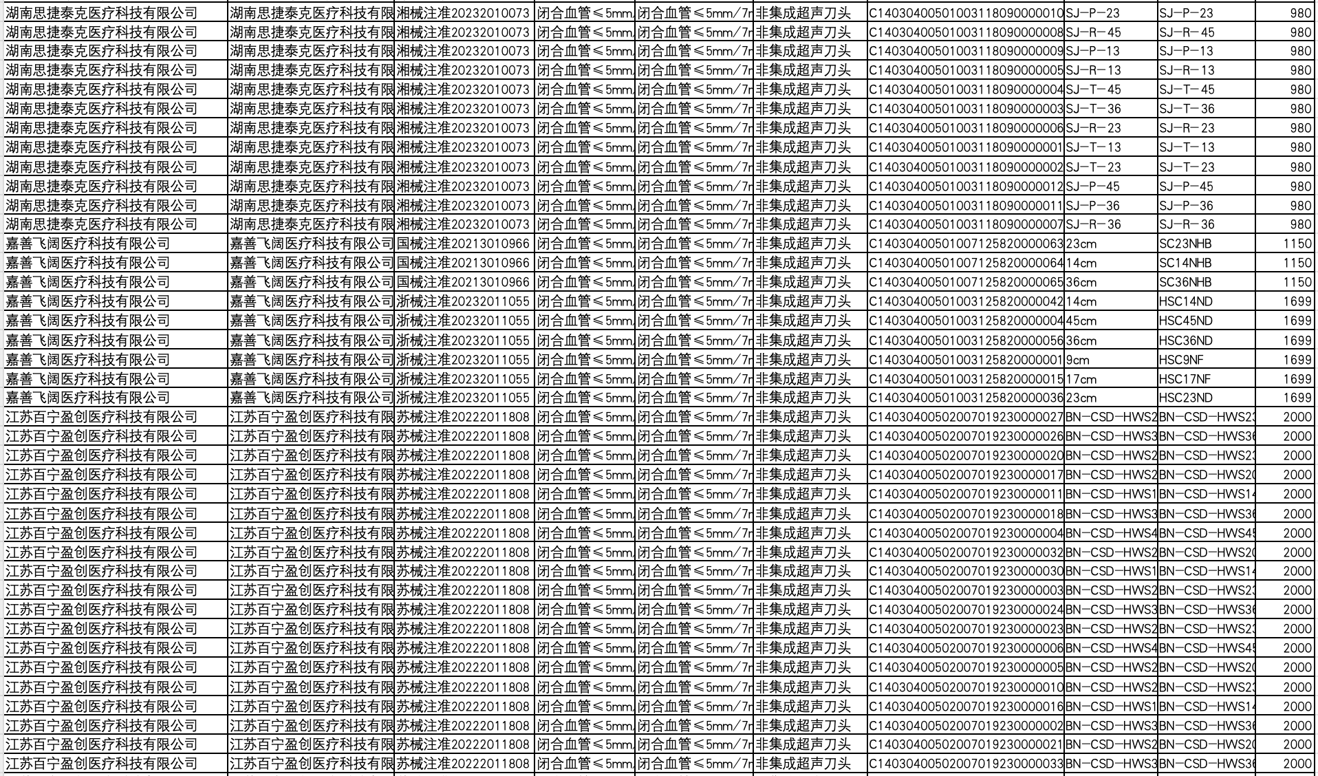 在低價(jià)聯(lián)動(dòng)模式下,超聲刀頭全國(guó)價(jià)格進(jìn)一步下調(diào)、拉齊。