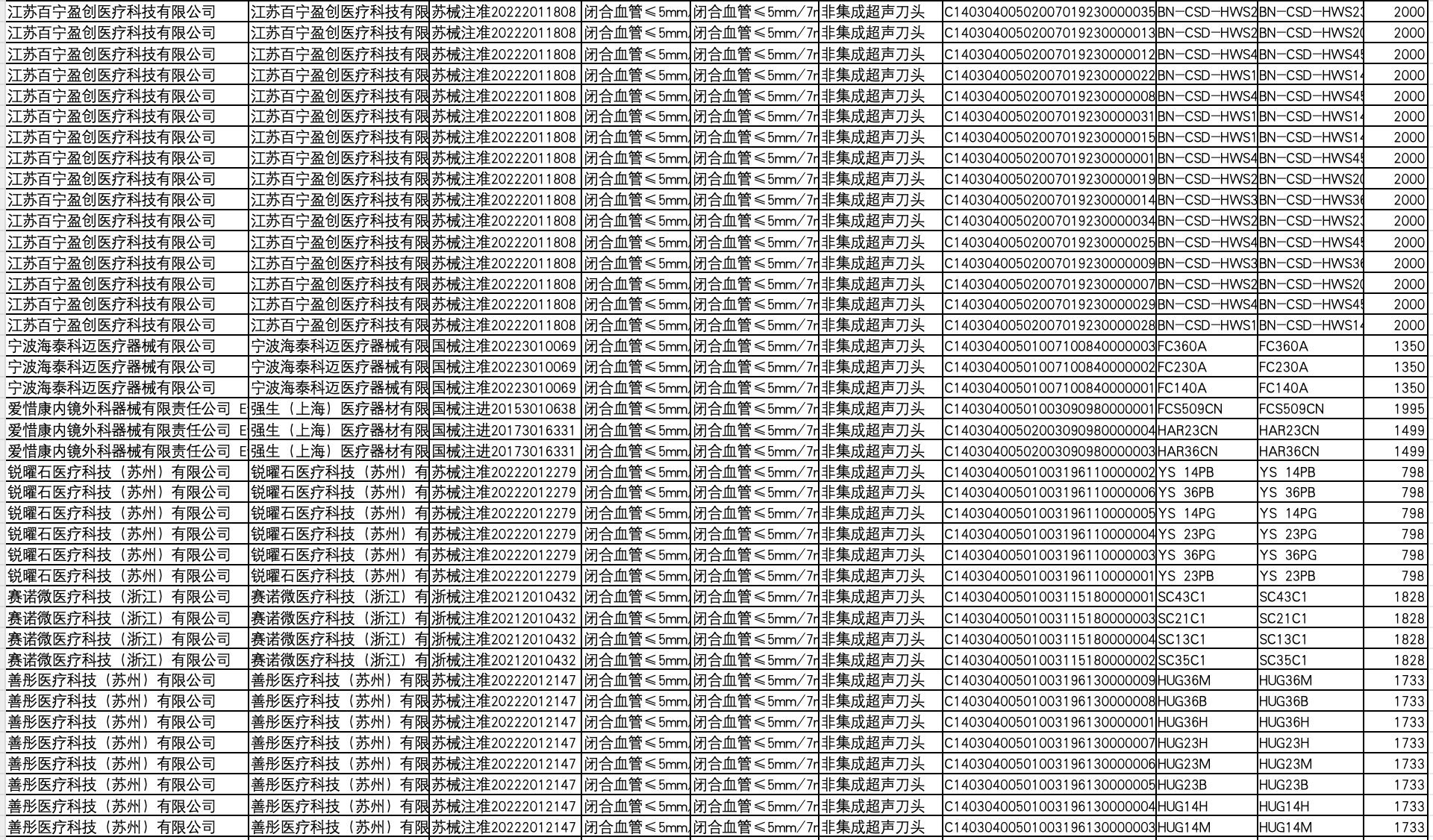 去年,廣東、山西、內(nèi)蒙古、上海、浙江、安徽、福建、江西、湖北、廣西、貴州、云南、青海、寧夏、新疆、新疆生產(chǎn)建設(shè)兵團(tuán)開展了超聲刀頭集采協(xié)議期滿接續(xù)采購(gòu)。