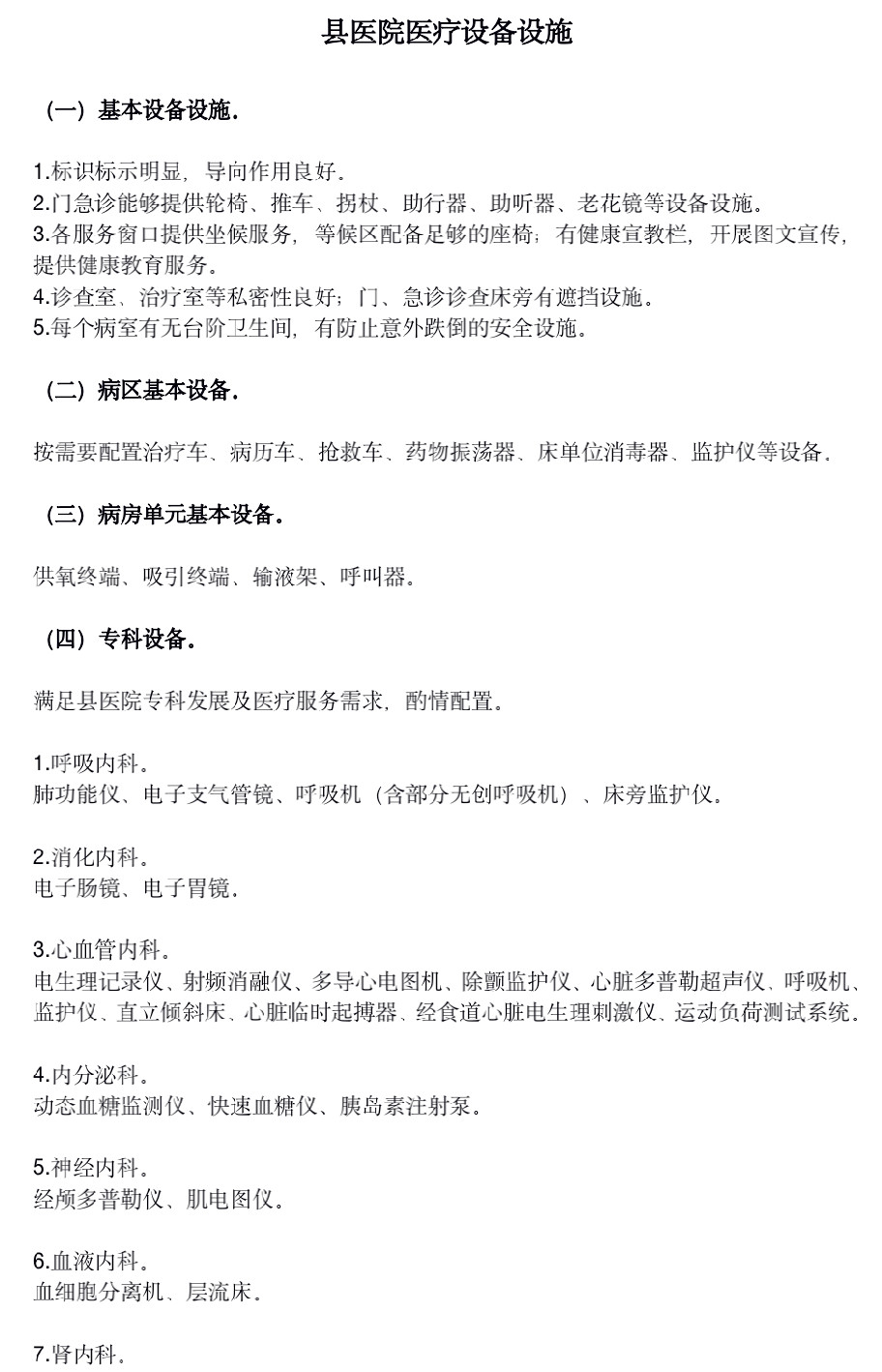 附:《縣醫(yī)院醫(yī)療設備設施基本標準》