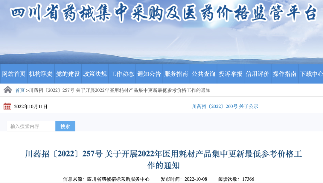 10月8日,四川省藥械集中采購平臺(tái)發(fā)布《關(guān)于開展2022年醫(yī)用耗材產(chǎn)品集中更新最低參考價(jià)格工作的通知》(以下簡(jiǎn)稱“通知”)。