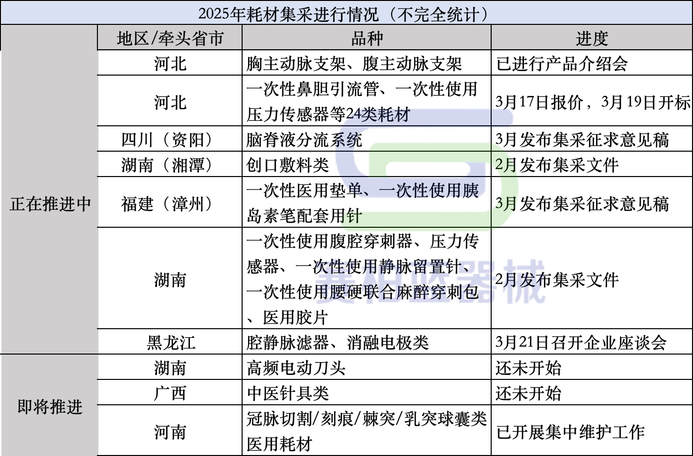 目前今年正在進(jìn)行中和即將進(jìn)行的耗材集采統(tǒng)計(jì)如下: