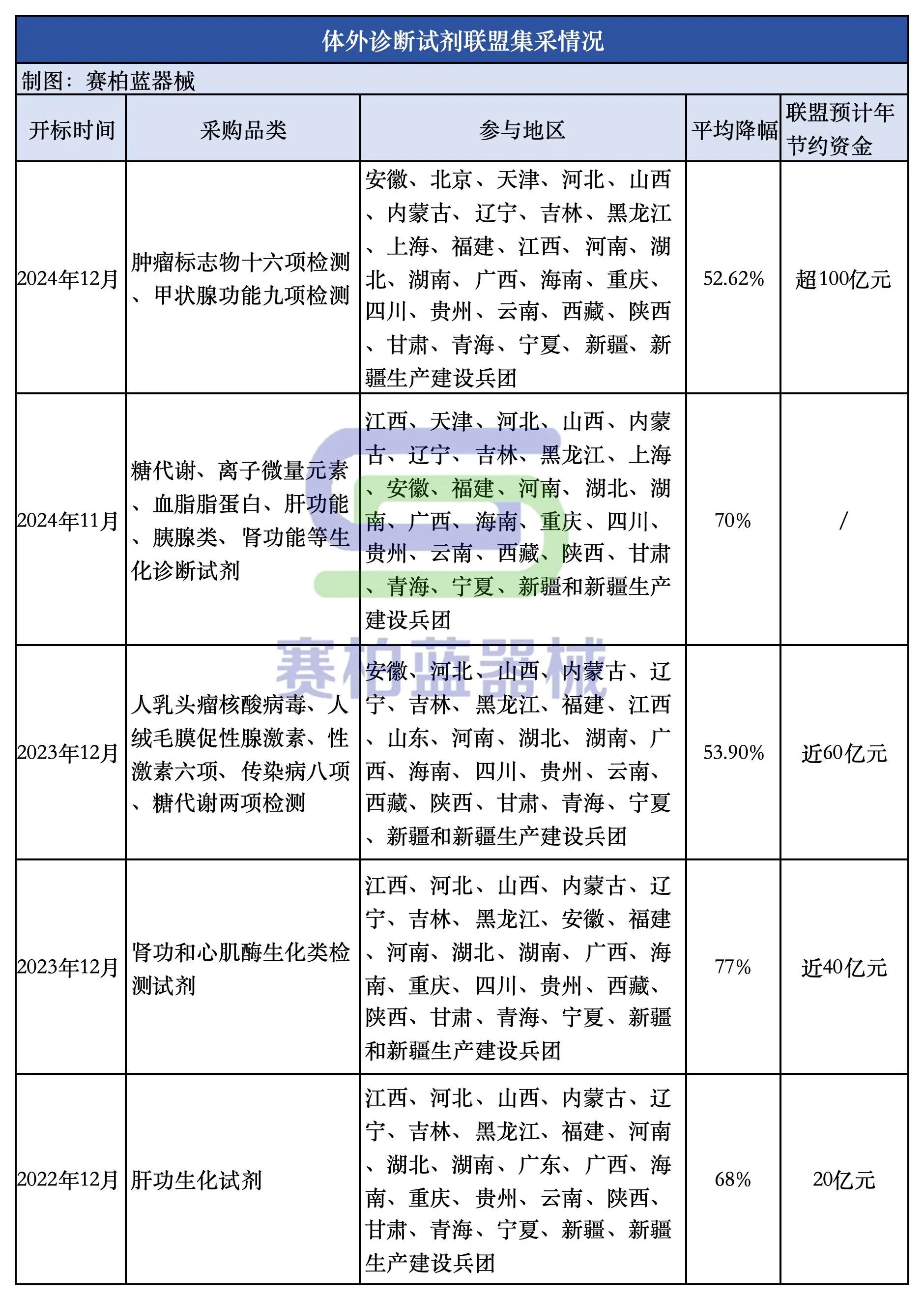 據(jù)報(bào)道,占采購(gòu)需求量90%的羅氏診斷、雅培、貝克曼、西門子等進(jìn)口企業(yè)以及邁瑞、安圖、新產(chǎn)業(yè)、邁克、亞輝龍等國(guó)內(nèi)龍頭企業(yè),全部以超過(guò)50%的降幅擬中選。擬中選產(chǎn)品平均降幅52.62%,最高降幅為84.25%,預(yù)計(jì)一年可為聯(lián)盟省份醫(yī)療機(jī)構(gòu)節(jié)約試劑采購(gòu)費(fèi)用超過(guò)100億元。