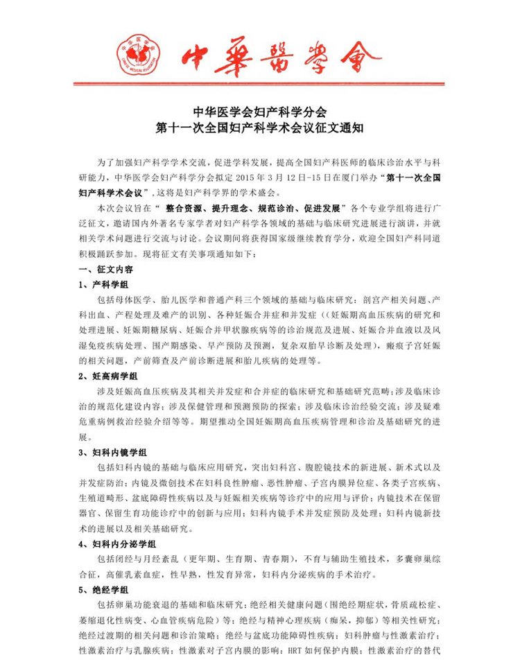中華醫(yī)學(xué)會(huì)婦產(chǎn)科學(xué)分會(huì)第十一次全國(guó)婦產(chǎn)科學(xué)術(shù)會(huì)議
