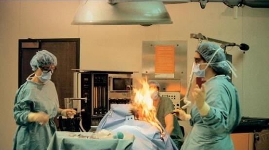 預防環(huán)境火警:避免在有易燃易爆和揮發(fā)性氣體、高氧環(huán)境環(huán)境中使用電刀(尤其是胸部或頭部手術),在氣道部位使用時應暫時移開氧氣。(下圖來自網(wǎng)絡)