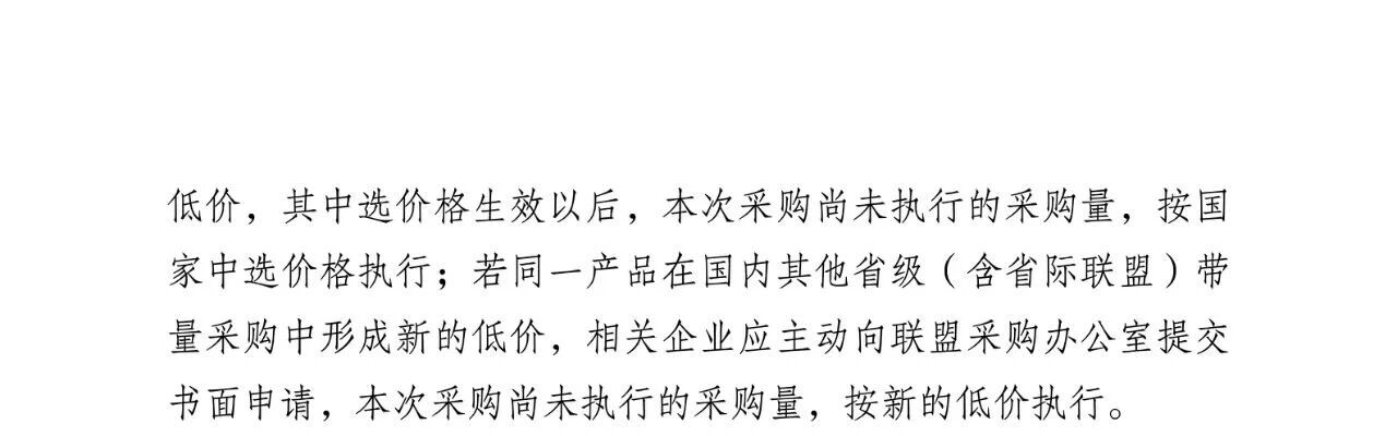 申報(bào)企業(yè)根據(jù)各分組目錄情況,選取一個(gè)產(chǎn)品作為代表品進(jìn)行申報(bào)。擬中選價(jià)格公示后,擬中選產(chǎn)品的各規(guī)格型號(hào)價(jià)格高于各省級(jí)醫(yī)藥采購(gòu)平臺(tái)最低掛網(wǎng)價(jià)的,擬中選企業(yè)應(yīng)主動(dòng)申請(qǐng)價(jià)格調(diào)整。
