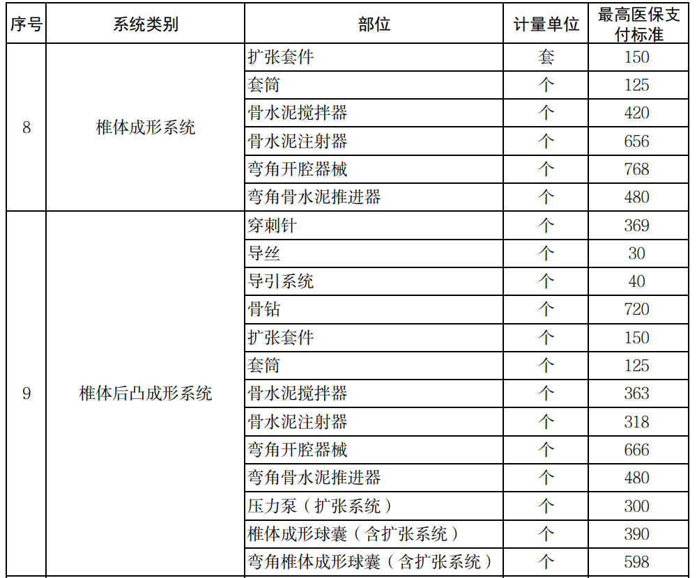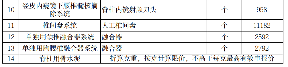 骨科脊柱類耗材集采中選產(chǎn)品以含伴隨服務(wù)費(fèi)的中選價(jià)格為支付標(biāo)準(zhǔn),使用超過或少于中選產(chǎn)品系統(tǒng)配備數(shù)量的中選產(chǎn)品部件,以各系統(tǒng)中選部件的中選價(jià)格為支付標(biāo)準(zhǔn),納入醫(yī)保支付范圍,醫(yī)?;饟?jù)實(shí)按規(guī)定比例支付。