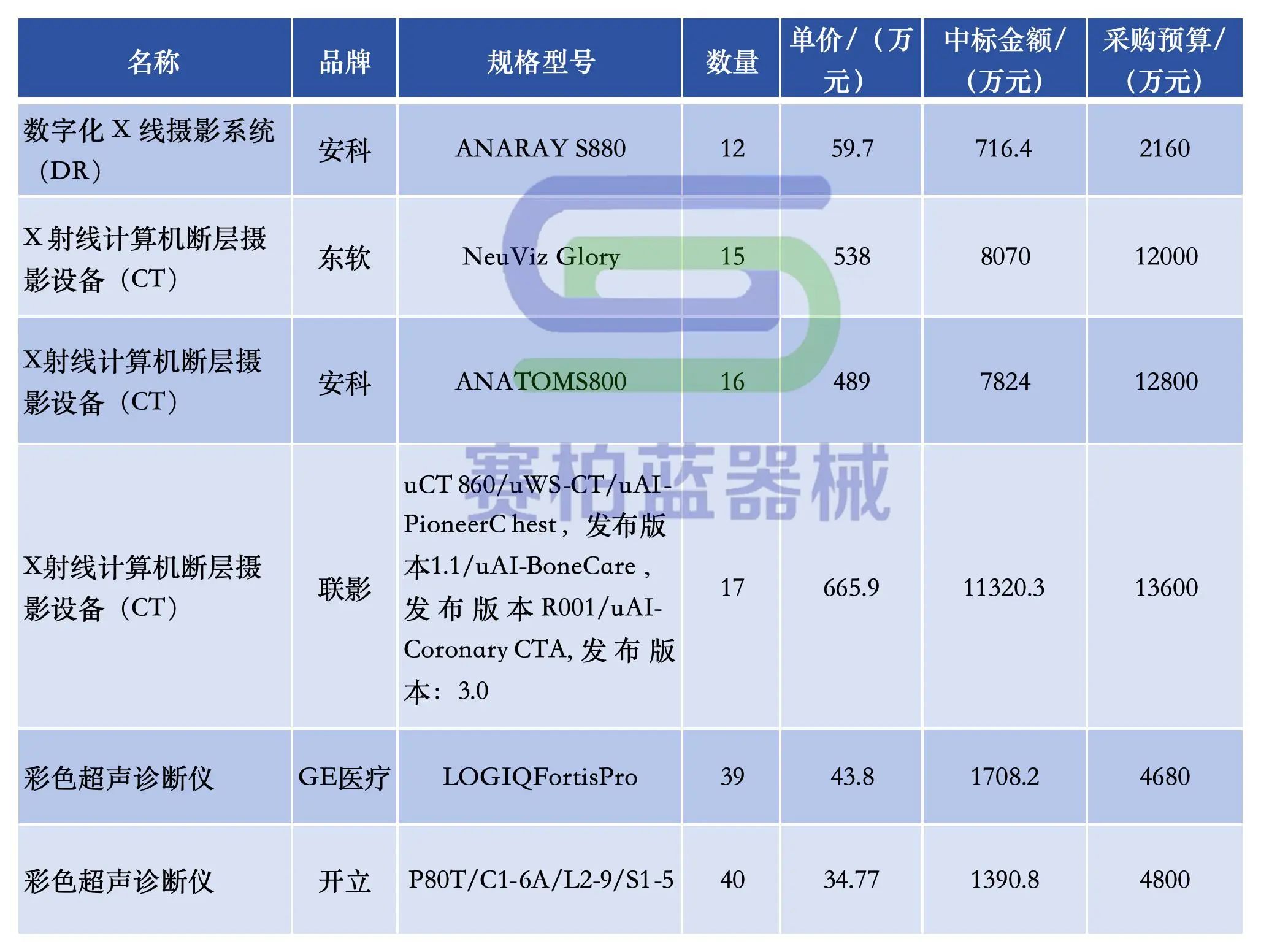 CT組采購(gòu)規(guī)模最大,結(jié)果顯示,聯(lián)影、東軟、安科三家企業(yè)中標(biāo),總中標(biāo)金額約2.7億元。