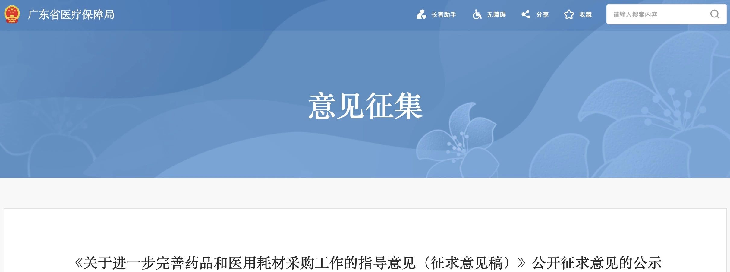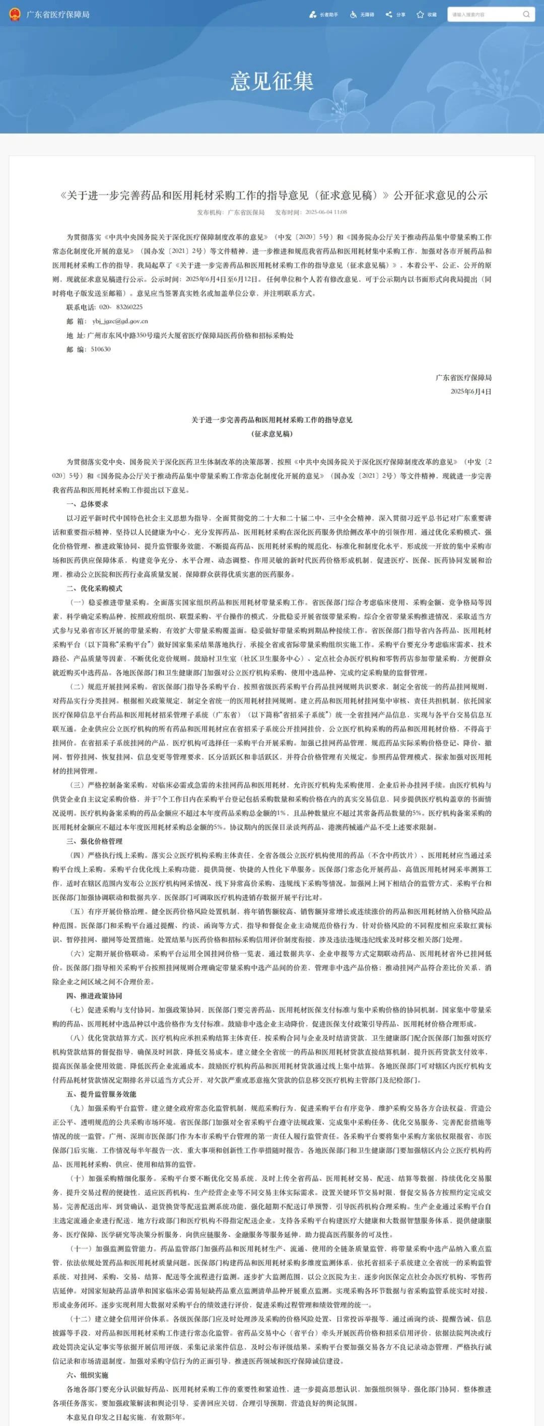 今日(6月4日),廣東醫(yī)保局發(fā)布《關(guān)于進一步完善藥品和醫(yī)用耗材采購工作的指導(dǎo)意見(征求意見稿)》(簡稱《指導(dǎo)意見》),公示時間為2025年6月4日至6月12日。