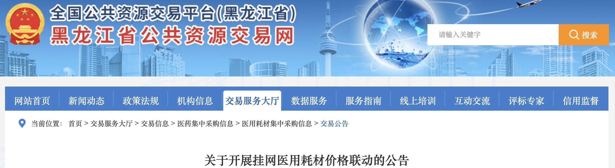近日,黑龍江省公共資源交易中心發(fā)布《關于開展掛網(wǎng)醫(yī)用耗材價格聯(lián)動的公告》(簡稱《公告》)。