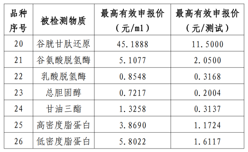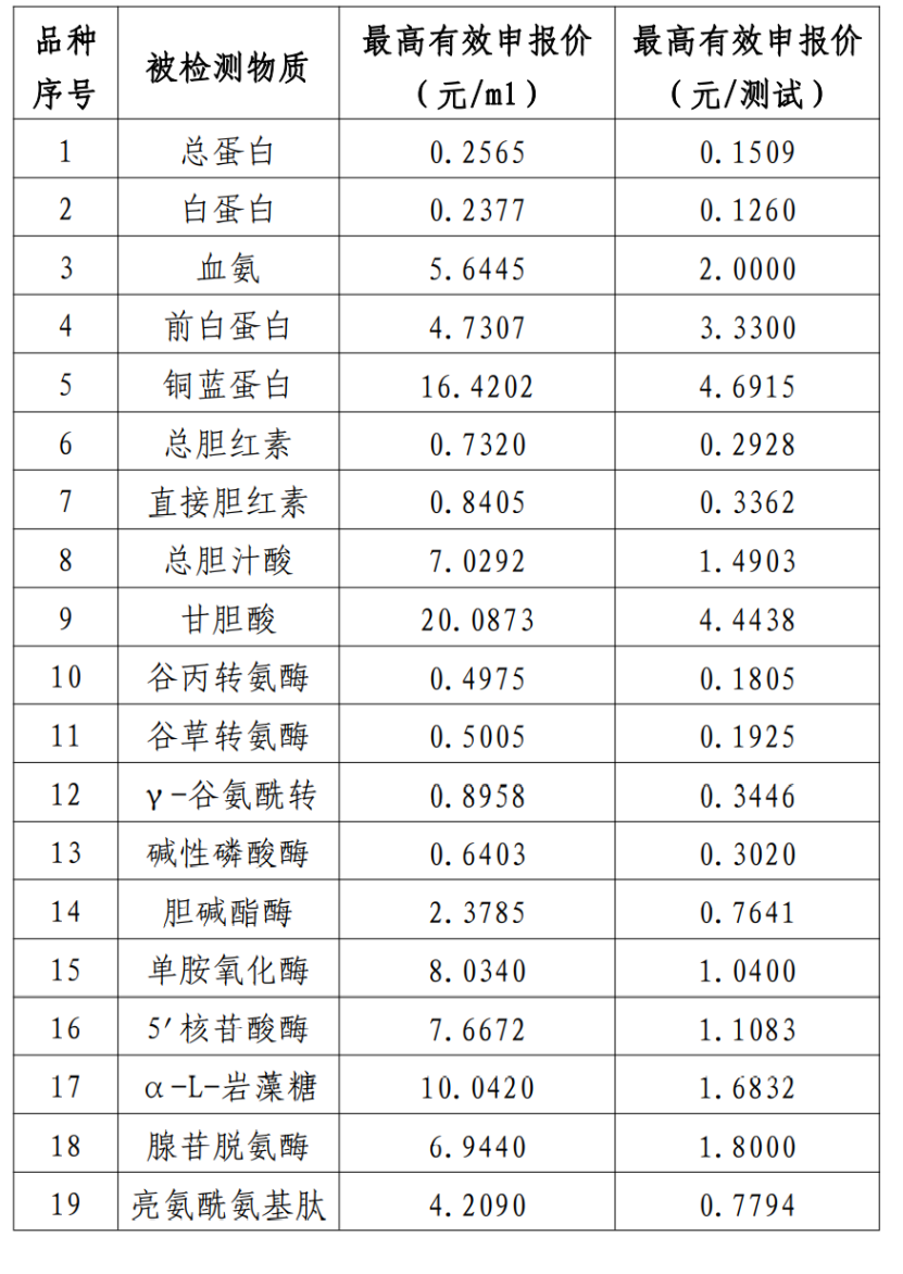 11月29日,江西醫(yī)保局發(fā)布《肝功生化類檢測試劑省際聯(lián)盟集中帶量采購公告(第2號)》,公布最高有效申報(bào)價(jià)和采購需求量。