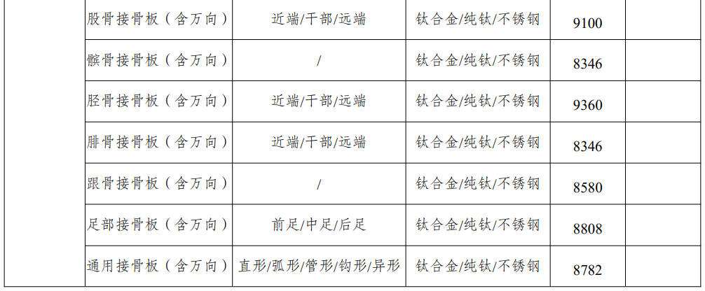 采購品種:鎖定加壓接骨板系統(tǒng)、普通接骨板系統(tǒng)、髓內(nèi)釘系統(tǒng)、單獨(dú)使用的螺釘?shù)裙强苿?chuàng)傷類產(chǎn)品,以及部分5mm集成超聲刀頭。