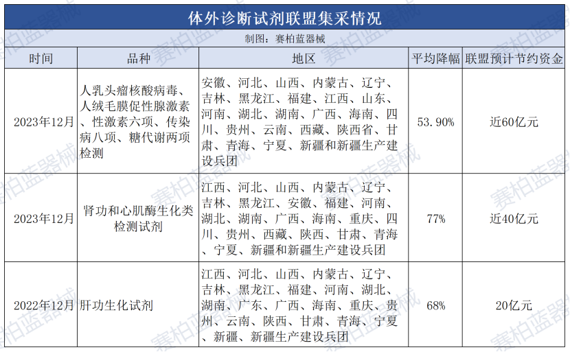 今年5月國家醫(yī)保局發(fā)文,2024年將重點指導7大全國聯(lián)采工作,體外診斷就占了兩大項目,分別為江西牽頭開展生化類體外診斷試劑聯(lián)盟與安徽牽頭開展腫瘤標志物等體外診斷試劑聯(lián)盟。