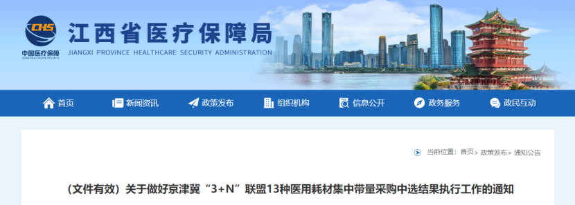 7月1日,江西醫(yī)保局發(fā)布《關(guān)于做好京津冀“3+N”聯(lián)盟13種醫(yī)用耗材集中帶量采購(gòu)中選結(jié)果執(zhí)行工作的通知》及《關(guān)于做好京津冀“3+N”聯(lián)盟骨科創(chuàng)傷類醫(yī)用耗材集中帶量采購(gòu)中選結(jié)果執(zhí)行工作的通知》。