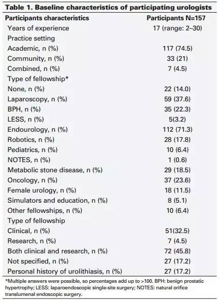 ----Roberts G, Opondo D, Nott L, et al. Do urologistsfollow the golden rule? A global urolithiasis management study by the ClinicalResearch Office of the Endourological Society[J]. Canadian UrologicalAssociation Journal, 2016, 10(1-2): 50.