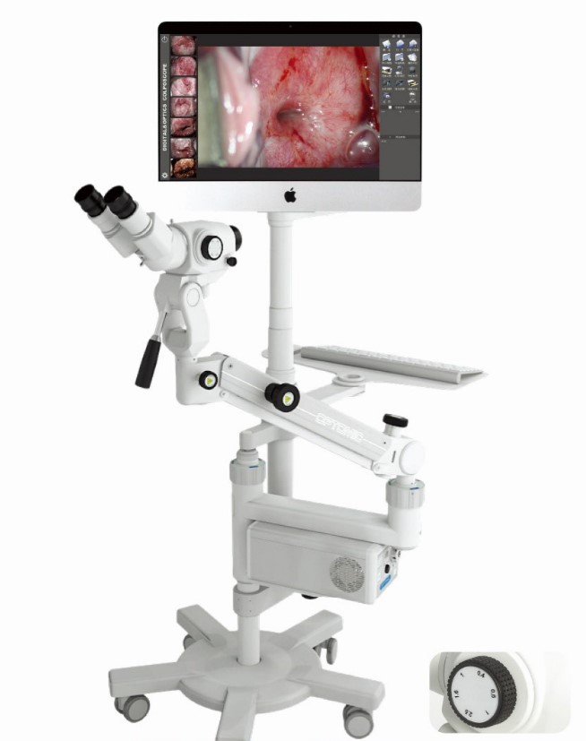 OPTOMIC采用平行光設計,無限遠光學,OP-C5設計為5當變倍體,從4倍放大至25倍5級放大,適合宮頸leep術要求;目鏡標準配置為10倍目鏡,配合消色差物鏡,達到清晰圖像,可安裝激光微調節(jié)系統(tǒng)。OP-C2設計為3檔變倍體,從6倍、10倍、16倍三檔觀察病灶,符合國際金標準。靈巧設計,自動配重調節(jié)。