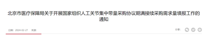 此外,北京、四川等地也啟動(dòng)了人工關(guān)節(jié)集中帶量采購(gòu)協(xié)議期滿(mǎn)接續(xù)采購(gòu)需求量填報(bào)工作。