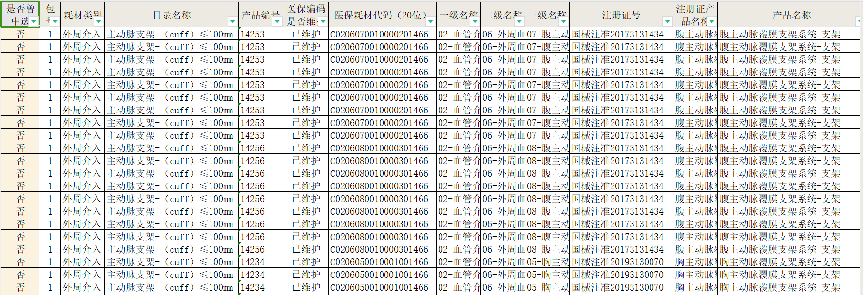 此次申報數(shù)據(jù)用于河南公立醫(yī)療機(jī)構(gòu)醫(yī)用耗材聯(lián)盟集采,其中神經(jīng)介入類共涉及22個包8450條產(chǎn)品信息,外周介入類共涉及46個包20167條產(chǎn)品信息。具體如下: