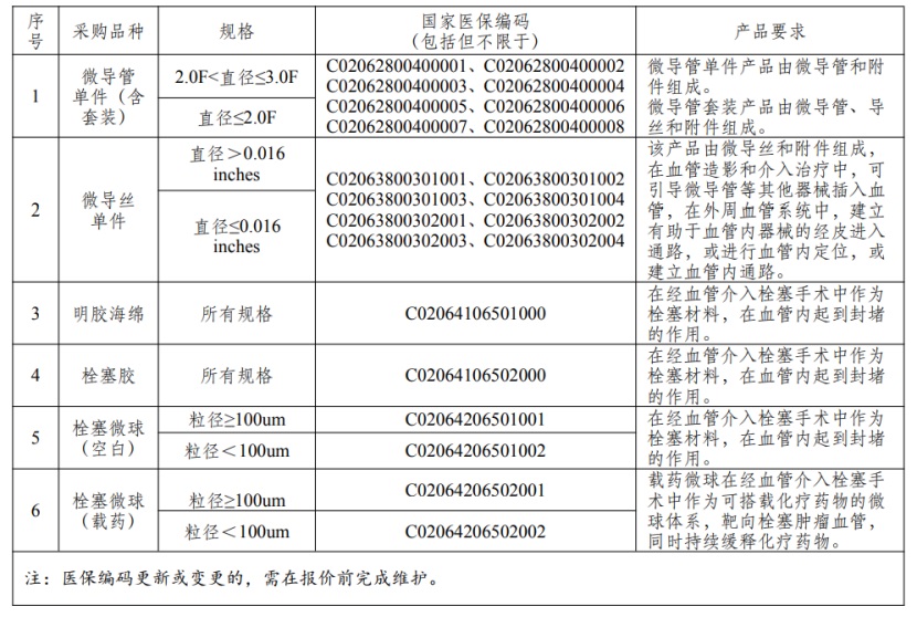 同日(12月6日),由甘肅牽頭的24省外周介入聯(lián)盟集采2號文發(fā)布,采購周期原則上為2年,品類包括外周血管介入類微導(dǎo)管(含套裝)、微導(dǎo)絲、明膠海綿、栓塞膠、栓塞微球。具體如下: