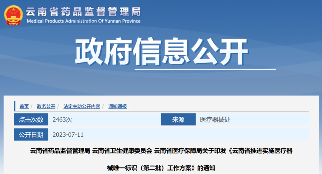 近日,云南藥監(jiān)局、云南醫(yī)保局、云南衛(wèi)健委三部門聯(lián)合發(fā)布《云南省推進實施醫(yī)療器械唯一標識(第二批)工作方案》(簡稱《方案》)。
