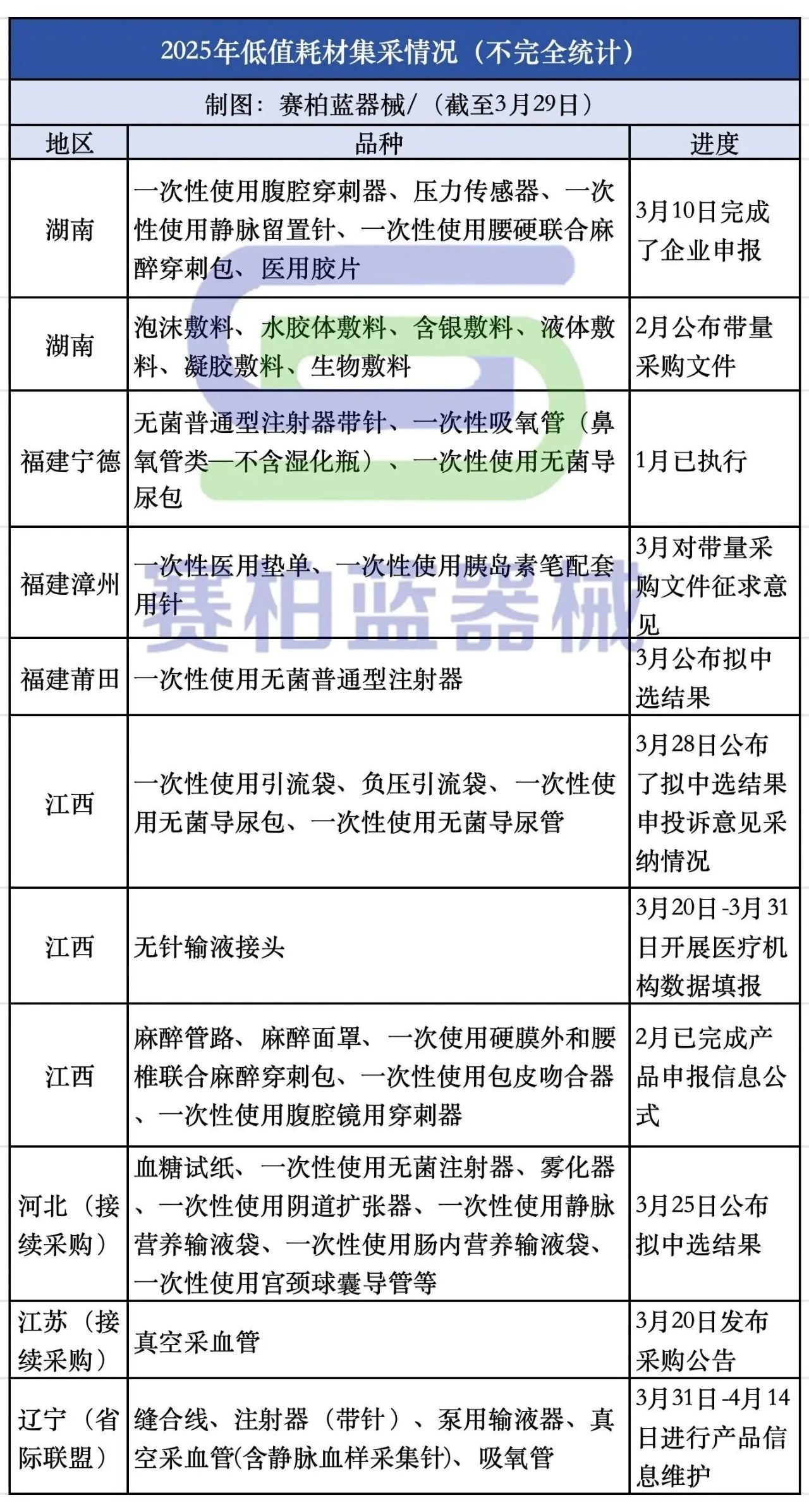 開年以來,低值耗材集采動作密集。據(jù)賽柏藍(lán)器械梳理,截至目前已有湖南、江西、河北、江蘇、遼寧、福建等多地推進(jìn)低值耗材集采。