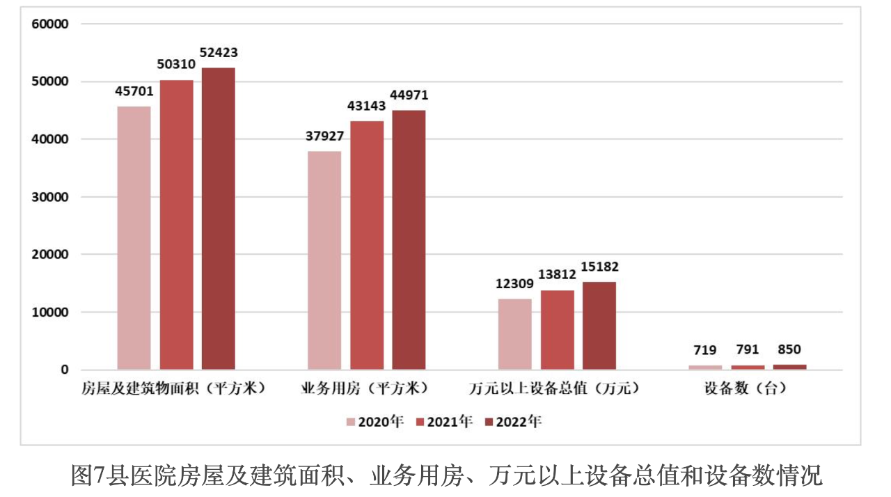 根據(jù)國(guó)家衛(wèi)健委《關(guān)于通報(bào)2021-2022年度縣醫(yī)院醫(yī)療服務(wù)能力評(píng)估情況的函》,2022年度,縣醫(yī)院萬(wàn)元以上設(shè)備總值平均約15182萬(wàn)元,較2020年度增長(zhǎng)23.34%;平均擁有萬(wàn)元以上設(shè)備數(shù)約為850臺(tái),較2020年度增加131臺(tái)。符合全國(guó)縣醫(yī)院基本標(biāo)準(zhǔn)要求的??圃O(shè)備配置率由2020年度的58.70%提高到65.15%。