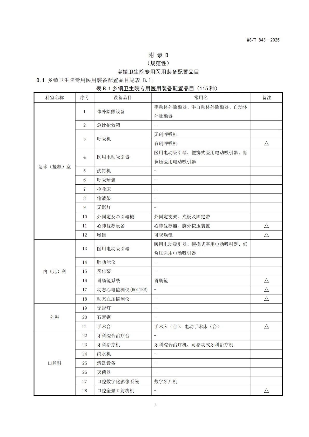 4月1日,國家衛(wèi)健委發(fā)布《鄉(xiāng)鎮(zhèn)衛(wèi)生院醫(yī)用裝備配置標準》,明確自2025年10月1日起施行新版標準。其中包括無創(chuàng)血壓測量設(shè)備、監(jiān)護設(shè)備、心電圖機、超聲診斷儀等22種通用醫(yī)用裝備,以及涵蓋急診(搶救)室、內(nèi)(兒)科、外科、口腔科、康復(fù)醫(yī)療科、全科醫(yī)療科、檢驗科等16個科室的115種專用裝備,為基層醫(yī)療設(shè)備配置提供了清晰的標準。