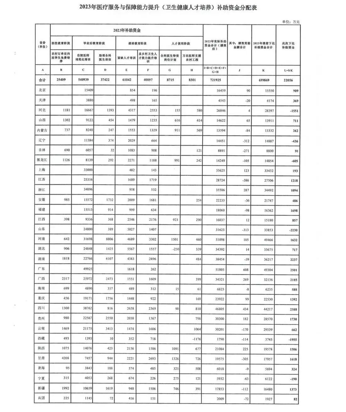 2023年醫(yī)療服務(wù)與保障能力提升(公立醫(yī)院綜合改革)補(bǔ)助資金 (第二批)分配表顯示,此次下達(dá)補(bǔ)助資金預(yù)算總計30億元,每個地區(qū)2億元。