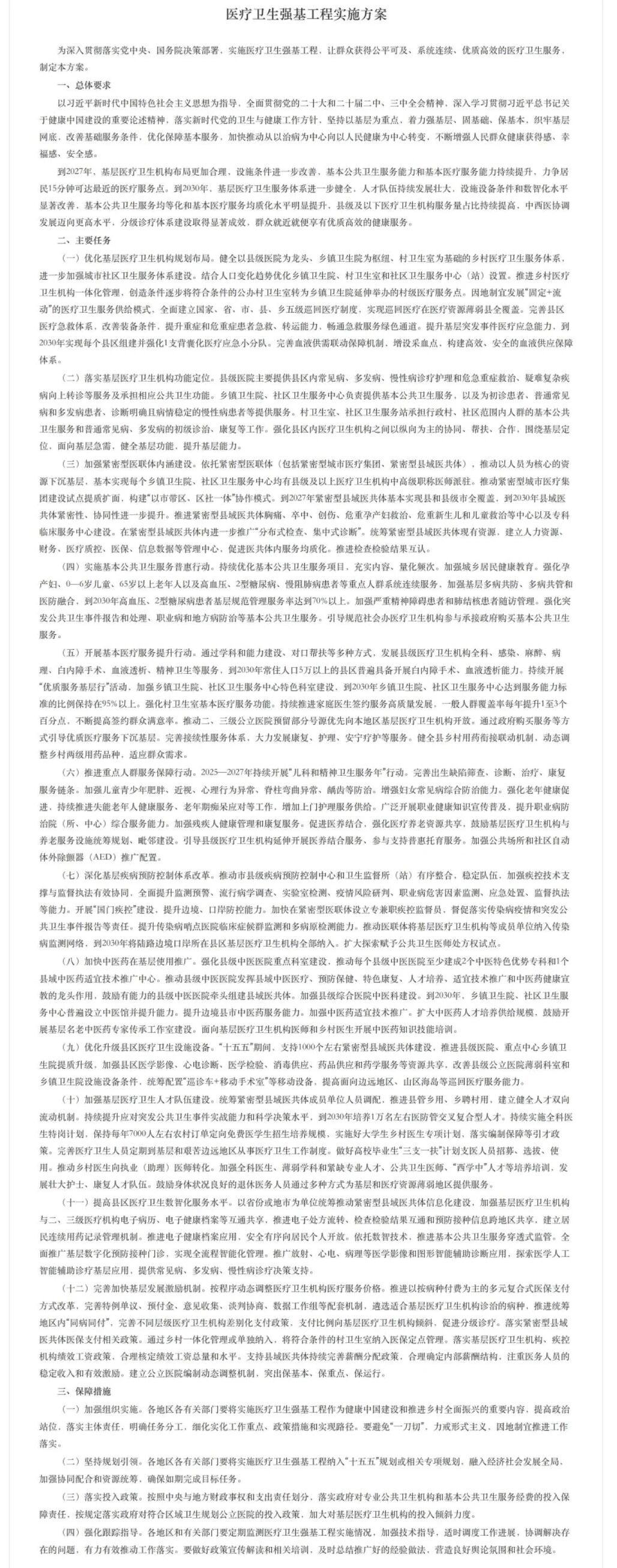 《醫(yī)療衛(wèi)生強(qiáng)基工程實施方案》正式發(fā)布