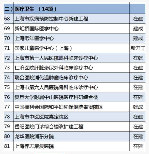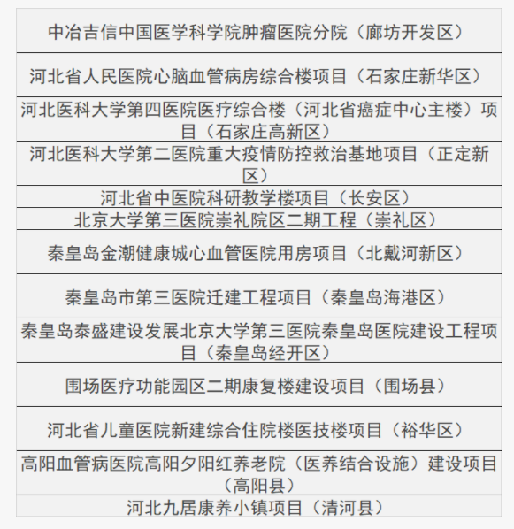 其中,新開工項目中含醫(yī)療衛(wèi)生項目12項: