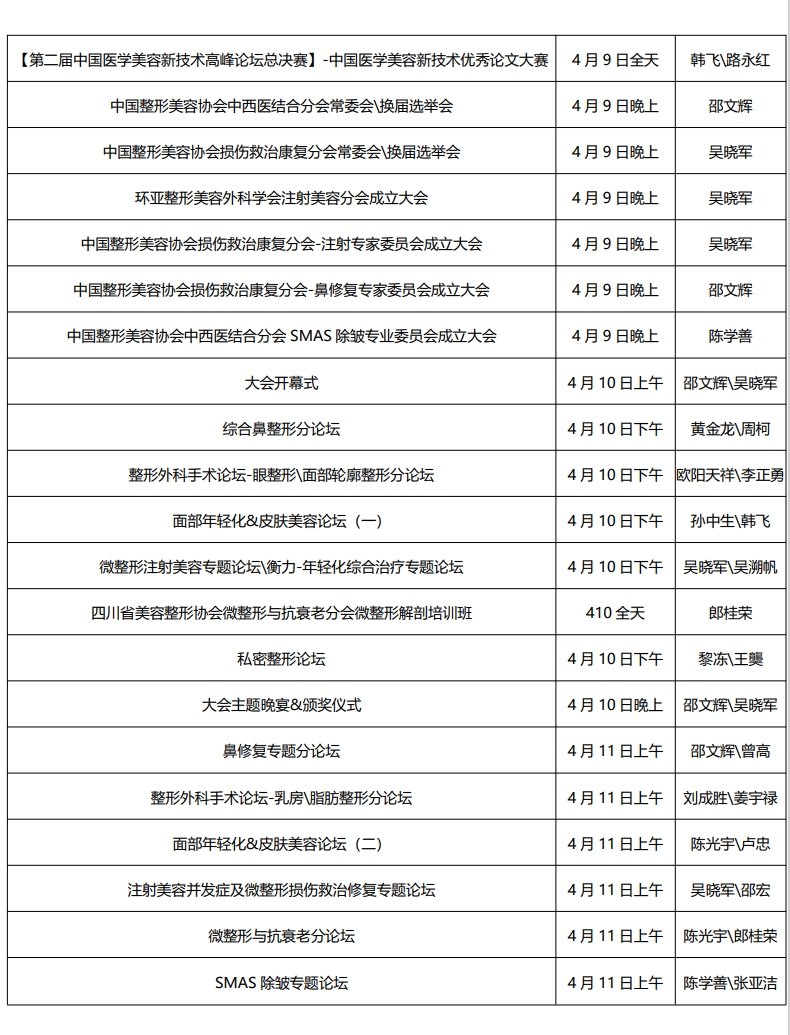中國醫(yī)學(xué)美容新潮流,傳播中國醫(yī)學(xué)美容新理念,展示了中國醫(yī)學(xué)美容新技術(shù)的發(fā)展趨勢,并促進(jìn)了相關(guān)成果的交流和推廣。為持續(xù)推動中國醫(yī)學(xué)美容的發(fā)展與繁榮,2021第二屆中國醫(yī)學(xué)美容新技術(shù)高峰論壇、2021中國整形美容協(xié)會中西醫(yī)結(jié)合分會西南專委會學(xué)術(shù)年會、四川省美容整形協(xié)會面部整形與修復(fù)再生分會學(xué)術(shù)年會擬于2021年4月8日至4月11日在中國醫(yī)美之都——成都召開。